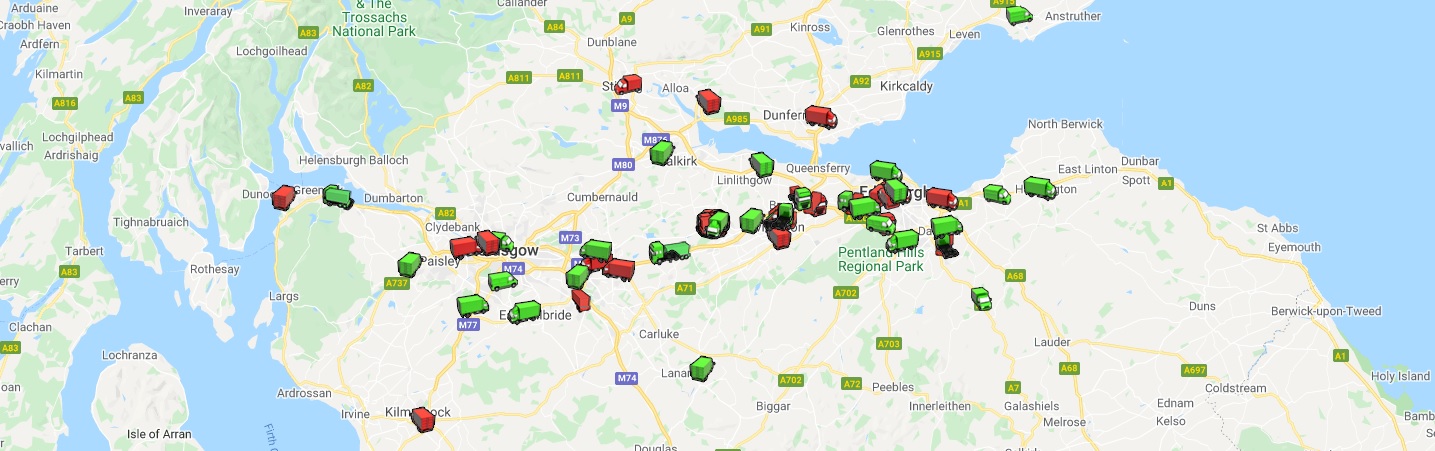Each of our vehicles has a full telematics system measuring MPG, Co2 output and driver performance. With built in GPS tracking we can and do monitor the locations and progress of each of our vehicles.